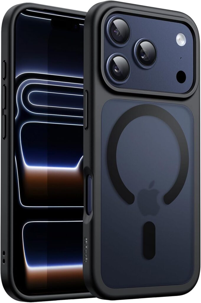 JETech Capa Magnética para iPhone 17 Pro 6,3 Polegadas Compatível com MagSafe, Case de Telefone Traseira Fosca Translúcida, Fina e Minimalista À Prova de Choque [Perfeitamente Ajustado] Projetado perfeitamente para iPhone 17 Pro 6,3 polegadas, sem fazer seu telefone parecer volumoso. NOTA: Não para iPhone 17 / Air / 17 Pro Max[Super Adsorção Magnética] Fixe-se firmemente ao carregador magneticamente. Uma vez encaixado, nunca desliza. Compatível com MagSafe acessórios, como carteira, porta-anéis e banco de energia[Parte Traseira Translúcida Fosca] A parte traseira da caixa é revestida com material fosco, confortável na mão, resistente a manchas irritantes, como impressões digitais, resíduos de óleo. Você também pode admirar o delicado logotipo do seu dispositivo[À Prova de Choque & Proteção] Feito de estrutura TPU flexível e parte traseira de PC anti-riscos, defende altamente seu dispositivo contra choques e quedas severas. O design de borda simplificado mostra uma textura elegante, deslizando facilmente no seu bolso para portabilidade conveniente e elegante[Proteção de Câmera & Tela] As bordas elevadas protegem efetivamente a tela e a câmera contra arranhões na superfície quando você coloca o telefone na horizontal. Além disso, os recortes alinhados permitem acesso total a todos os recursos e controles