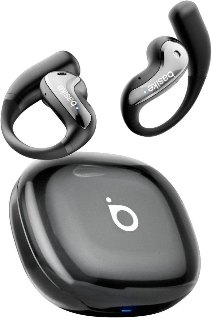 Basike Fone de Ouvido sem Fio OWS com Gancho, Estéreo Hi-Fi, 30h de Espera, Resistente à Água IPX4, Compatível com iOS e Android, Ideal para Esportes/Treino (Preto)