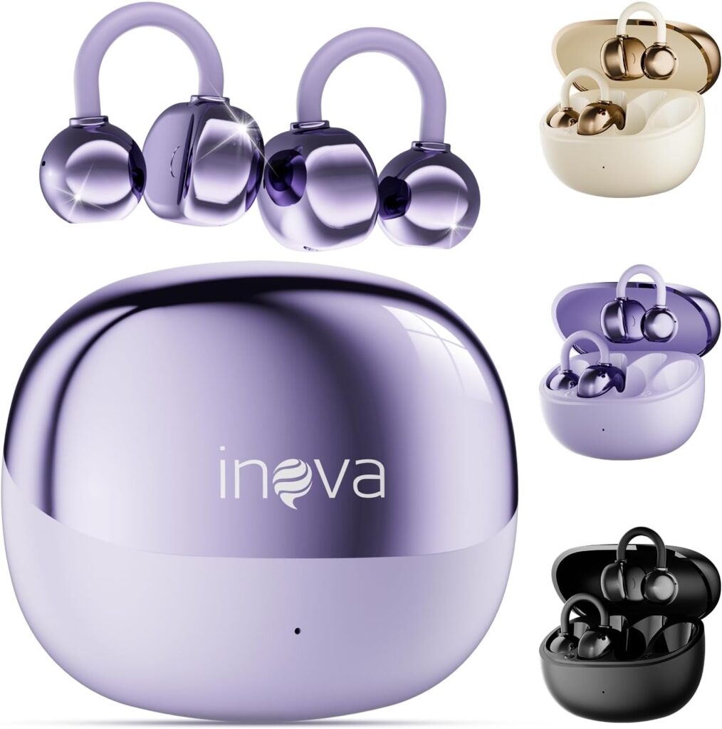 INAVA Fone de Ouvido de Nova Geração,Bluetooth 6.0,50h de Autonomia,À Prova d’Água IPX6,Microfone ENC,Conforto Leve para Esportes,Orelhas Pequenas e Óculos (Roxo)